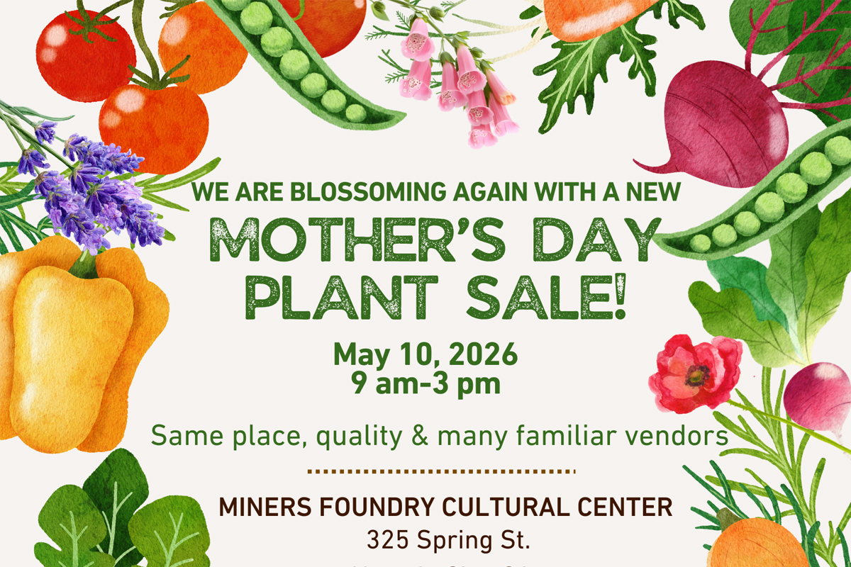 It’s the return of the Mother’s Day Plant Sale at the Miners Foundry! Join us on Sunday, May 10, 2026, from 9:00 AM to 3:00 PM for a vibrant, community-loved event featuring the same great location, quality offerings, and many familiar local vendors.