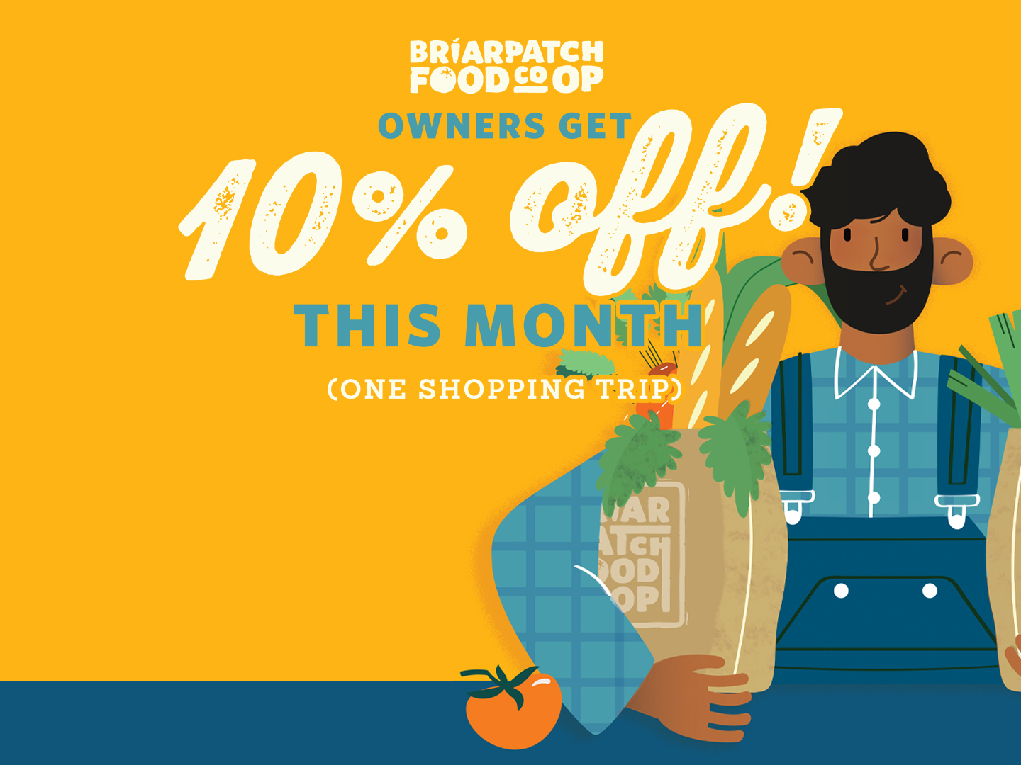 We’re showing our appreciation for YOU, our BriarPatch Owners and hope you enjoy your 10% discount on one shopping trip this month. Thanks for supporting your local co-op.